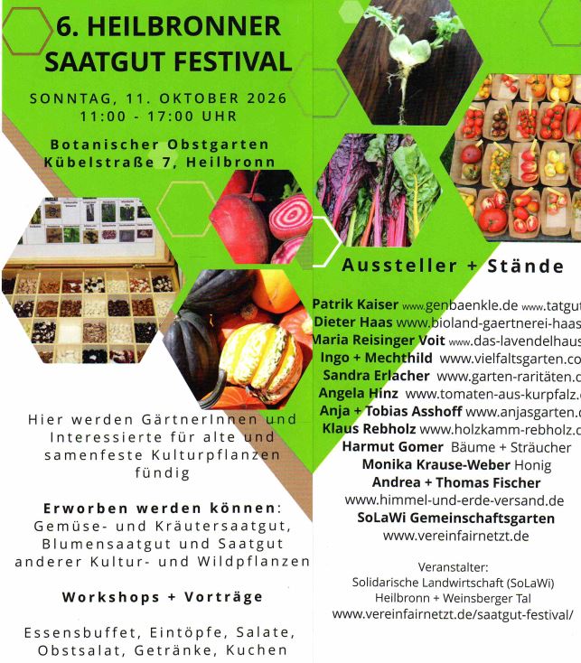 12.00 bis 12.25 Uhr: „SoLaWis im Raum Heilbronn und Gründung der SoLaWi Lebensgarten mit Selbsterntekonzept”, Klaus Umbach